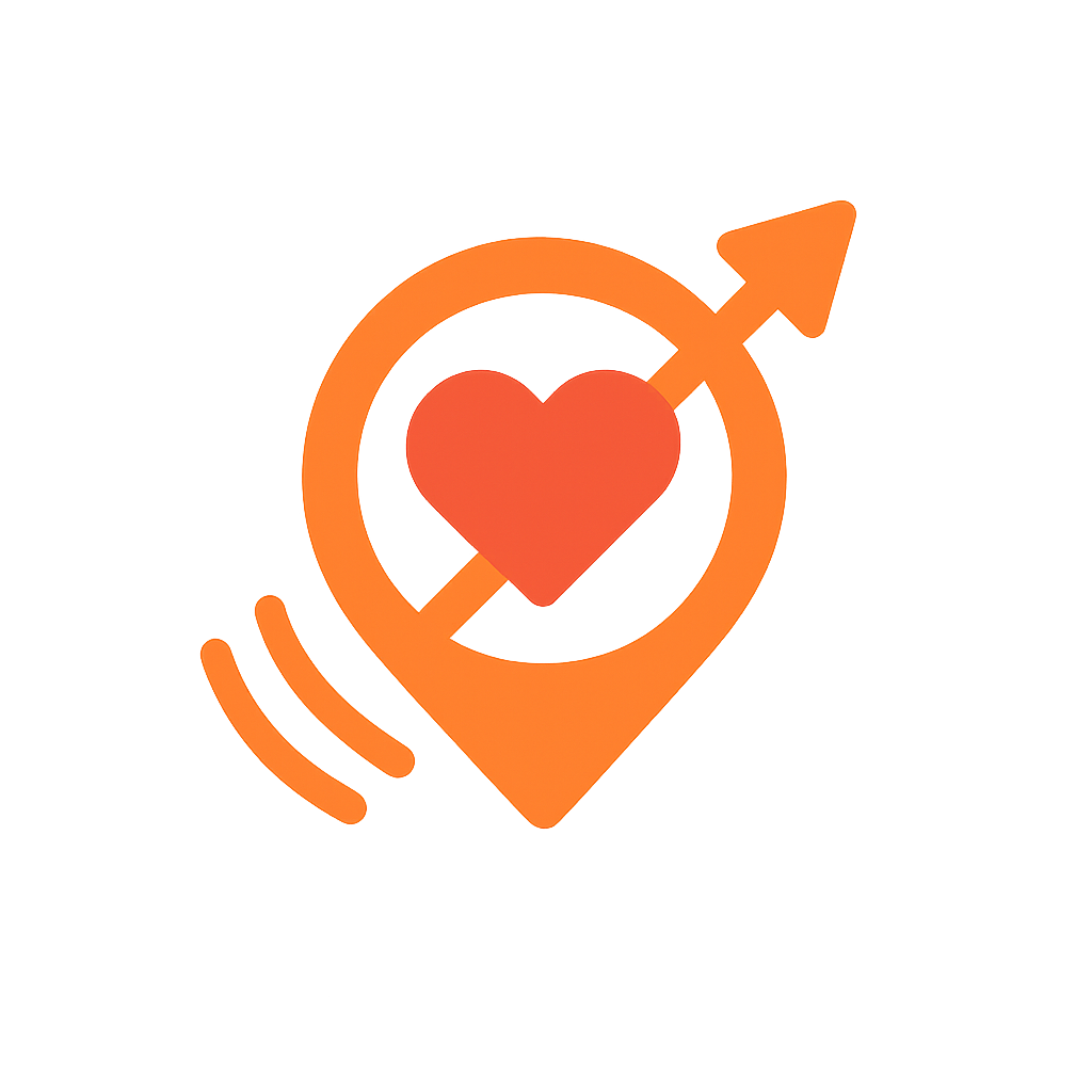 Location Pin + Heart: Combining a location pin with a heart inside or integrated suggests nearby singles, aligning with the app’s theme.